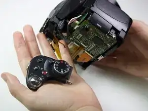 Блок управления — это панель сверху камеры, содержащая диск режимов, выключатель питания, кнопку спуска затвора и кнопку записи видео. Если какие-либо из этих кнопок отсутствуют, заедают или больше не работают, вы можете воспользоваться этим руководством, чтобы заменить блок. Перед началом убедитесь, что аккумулятор и SD-карта извлечены.