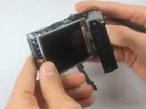 Это руководство позволит вам заменить вспышку, пройдя шаги по разборке, необходимые для доступа к вспышке. Сначала нужно снять переднюю и заднюю крышки, а также получить доступ к задней части экрана.