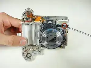 Удалите винт по 3 мм, который удерживает блок вспышки на камере.