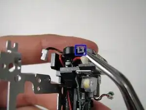 Найдите ленточный кабель, идущий от корпуса батареи к сборке вспышки.