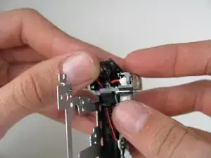 Поднимите зум-объектив от левой части камеры; у вас останется три компонента, соединённые ленточными кабелями.
