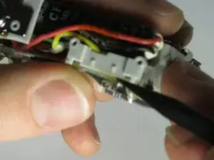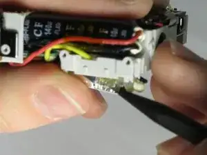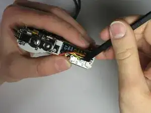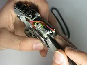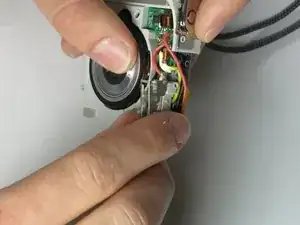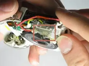 Снимите провод, расположенный между двумя слоями ленты, из подсборки лампы вспышки.