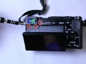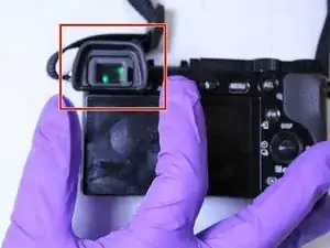 Используя отвертку Phillips #00, выкрутите три винта под видоискателем.