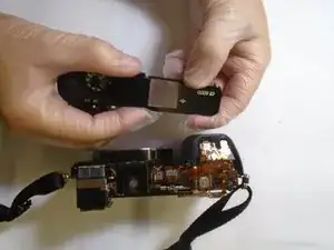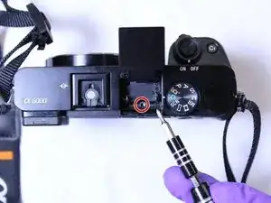 Используя отвертку Phillips #00, выкрутите единственный винт под блоком вспышки.