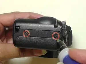 Отвинтите оба винта, крепящих крышку вспышки к корпусу камеры.