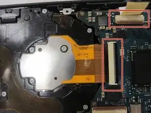 Возле колёсика управления находится ZIF-разъём, отожмите фиксатор и отсоедините ЖК-экран.