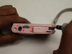 Отверткой Phillips #00 открутите внешние винты с корпуса камеры.