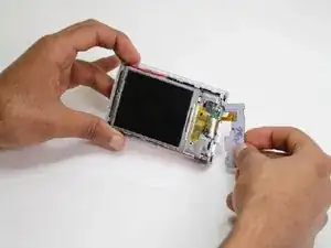С помощью рук подденьте ЖК-экран от металлической платы.