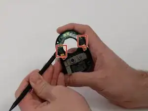 Используйте отвертку Phillips #00, чтобы удалить два винта длиной 5,0 мм из металлической скобы.