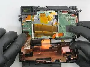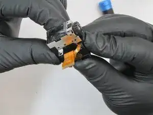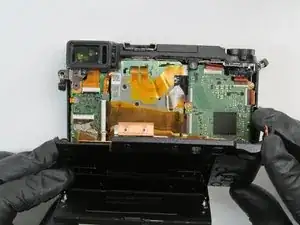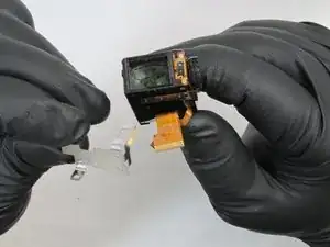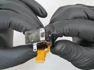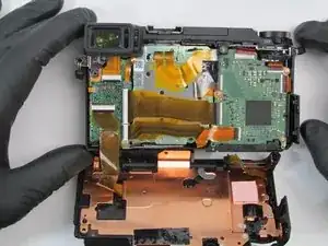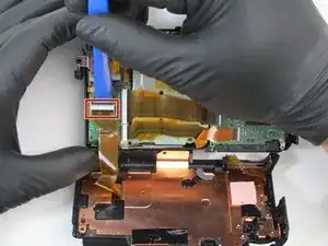 Вытяните ленточный кабель из разъёма. Задняя крышка теперь полностью отделена от камеры.