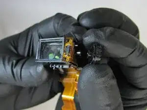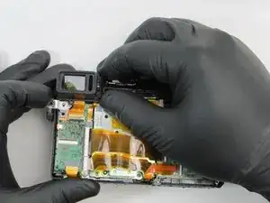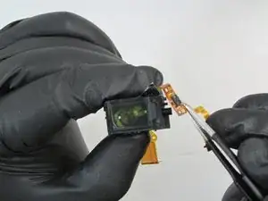 Пинцетом аккуратно отсоедините датчик глаза от блока видоискателя.