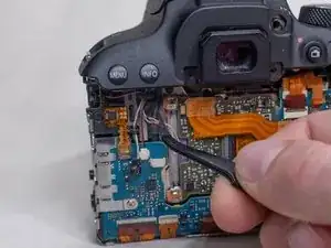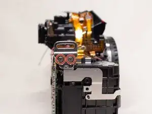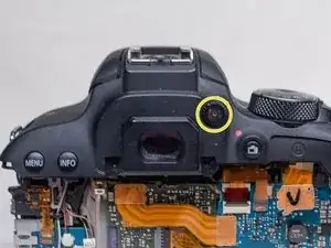 На задней панели камеры удалите следующие винты рядом с видоискателем: