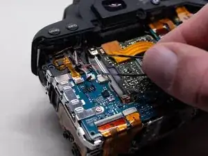 Используя пластиковую лопатку, аккуратно отоприте ленточный кабель задней крышки от основной платы.