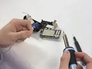 Используя паяльник, выпаяйте соединения динамика от материнской платы.