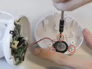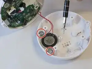 С помощью отвертки Philips #1 удалите винты с потайной головкой диаметром 9.5 мм, удерживающие динамик на месте.