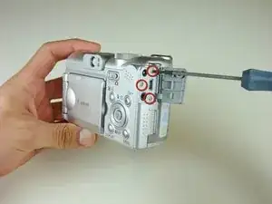 Удалите два винта на нижней панели камеры.