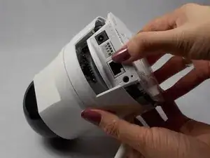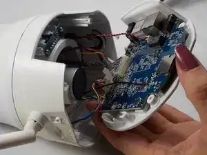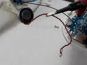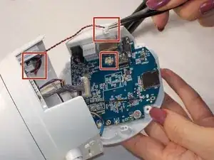 С помощью безопасных пинцетов отключите 2-контактный разъем с красным и черным проводами, расположенный рядом с портами ethernet и SD.