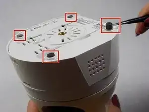 Удалите четыре резинки, чтобы получить доступ к винтам.