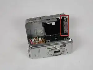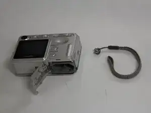 Найдите крышку батарейного отсека на нижней стороне камеры, напротив стороны с кнопкой питания.