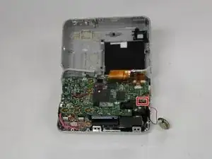 Чтобы полностью извлечь динамик, используйте паяльник для выпаивания красного и чёрного проводов, соединяющих динамик с материнской платой. Обратите внимание: чёрный провод подсоединён к клемме, расположенной ближе к внешней стороне камеры.