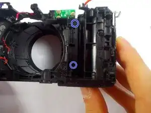 Снимите два винта под механизмом вспышки.