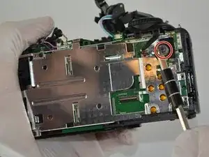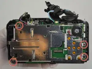 Используйте крестовую отвёртку, чтобы выкрутить винты M3 x 4 мм с крышки вспышки камеры, как указано на изображении.