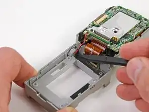 Используйте пинцет, чтобы извлечь шлейф SD из разъема на материнской плате.