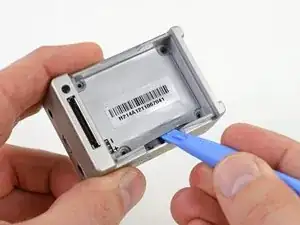 Подденьте край пластиковым инструментом для открытия под наклейку на задней крышке и осторожно снимите наклейку.