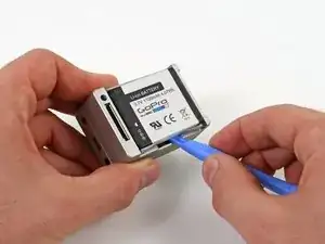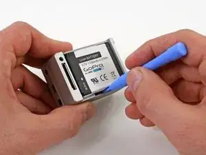 Вставьте пластиковый инструмент для открытия между аккумулятором и задней крышкой.