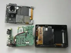 После удаления разъема можно отложить корпус камеры в сторону и продолжить работу с материнской платой.