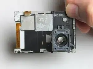 После того как узел камеры снят, можно начать отделять узел материнской платы от корпуса камеры.