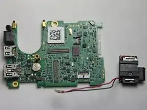 Переверните материнскую плату. Узел динамика должен быть ослаблен и соединён только двумя проводами, ведущими к белому разъему.
