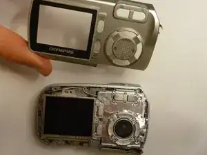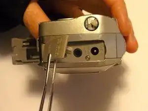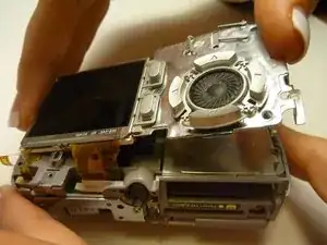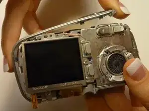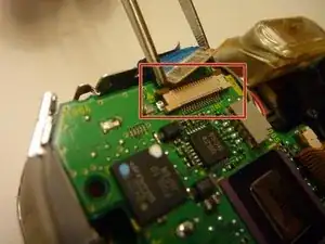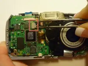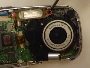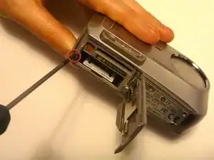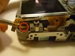 Удалите один винт справа от экрана LCD во внутреннем корпусе камеры крестовой отверткой Phillips #00.