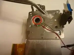С помощью пинцета аккуратно покачивайте, тяните и отделите ленту от поверхности внутреннего корпуса камеры.