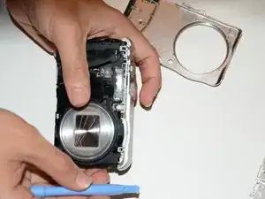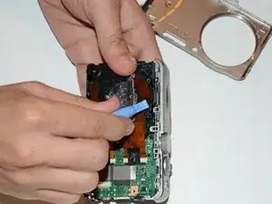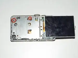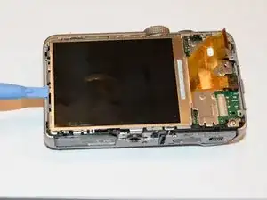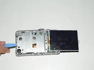 ЖК-экран удерживается защёлкой с левой стороны, которую можно освободить пластиковым инструментом для вскрытия.