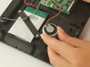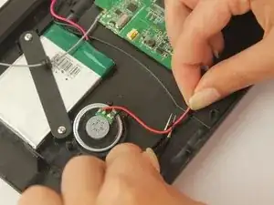 Найдите круглый динамик в одном из углов устройства. Чтобы освободить динамик, сожмите металлический фиксатор и снимите его с динамика.