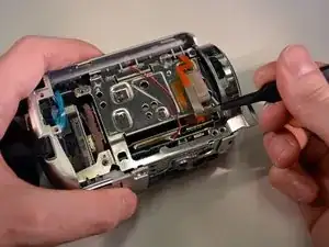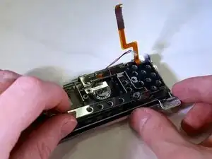 С помощью тупых пинцетов отсоедините маленькую ленточную проводку.