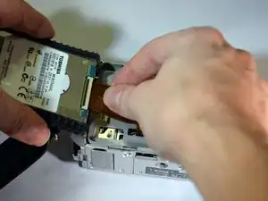 С помощью пальцев приподнимите HDD за его правый край, поворачивая его по левому краю.