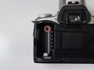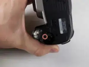 Вытащите два чёрных винта Phillips #00 длиной 2,5 мм на правой боковой панели камеры.