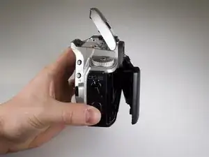 Откройте вспышку и удалите серебристый винт Phillips #00 длиной 4,0 мм под ней.