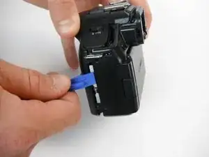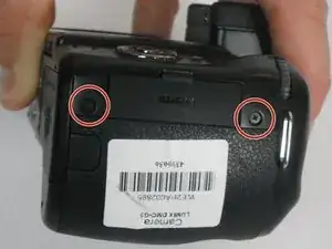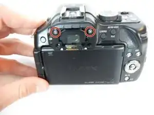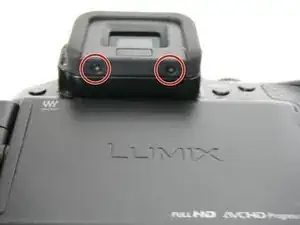 Удалите два винта Phillips J000 длиной 4,4 мм, расположенные рядом с верхним краем видоискателя.