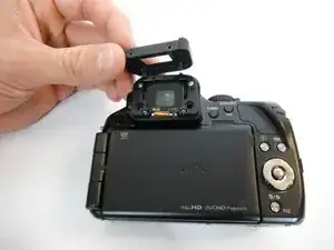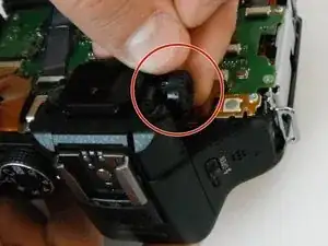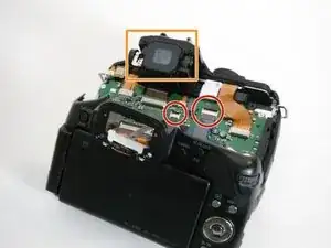 Удалите два винта Phillips J000 длиной 3,2 мм, расположенные на нижнем крае крышки видоискателя.
