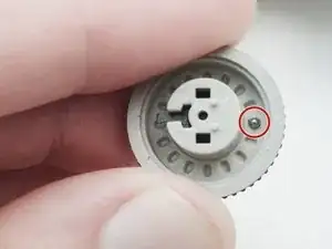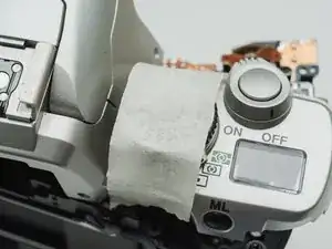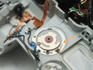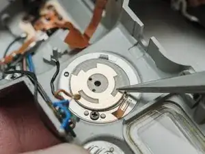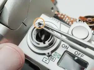 Снимите один винт 7,0 мм, отвертка #00 рядом с барабаном приёма плёнки.