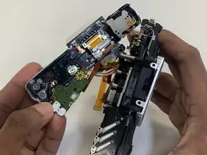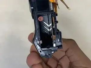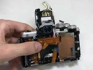 Осторожно извлеките видоискатель из камеры, следя за ленточными кабелями, которые могут быть ещё подключены к другим компонентам.