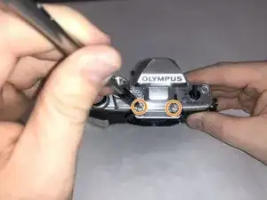 Крестовой отвёрткой Phillips #00 снимите два чёрных винта 5,4 мм и один серебристый винт 2 мм с видоискателя.