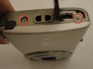 Отверткой Phillips (PH000) удалите винты задней крышки (обведены красным).