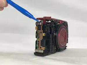 Используйте пластиковый инструмент для вскрытия, чтобы ослабить и снять переднюю и заднюю панели камеры, а также две боковые части.