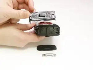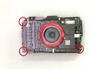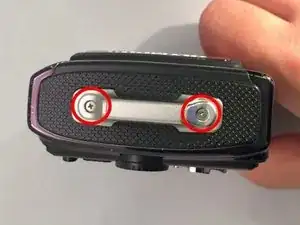 Найдите сторону камеры с кольцом для ремешка и выкрутите два винта Phillips #00 длиной 5,3 мм, находящихся на ручке.