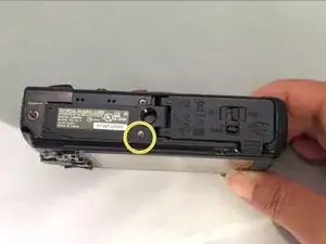 На нижней стороне камеры выкрутите один винт Phillips #00 длиной 3,5 мм из корпуса под ручкой.