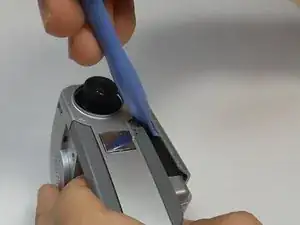 С помощью инструмента для вскрытия снимите наружную крышку поворотного экрана.